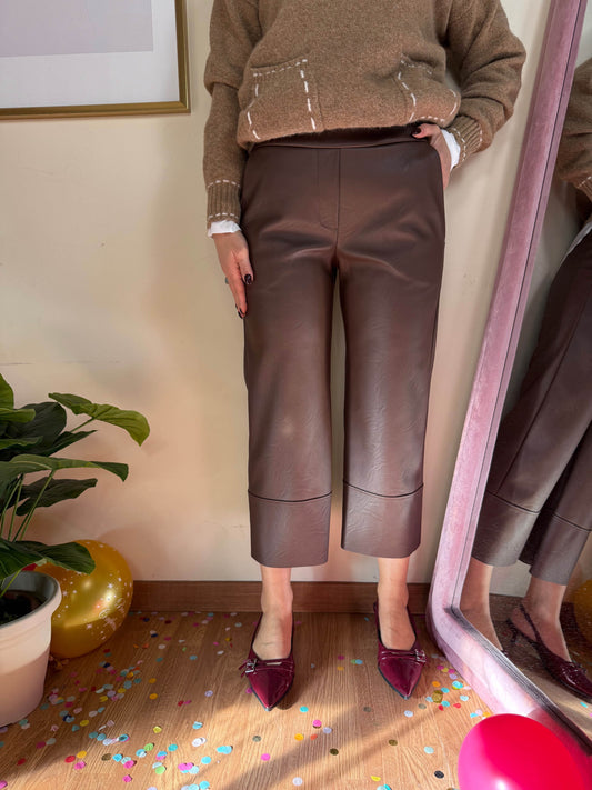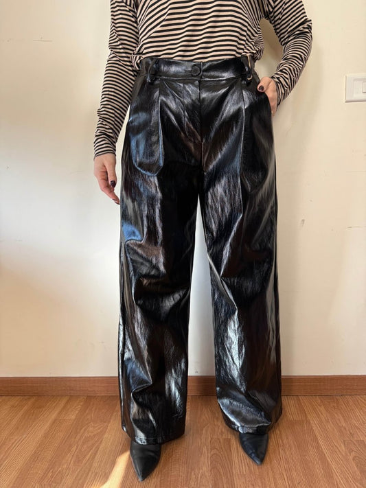 Pantalone barrel in similpelle