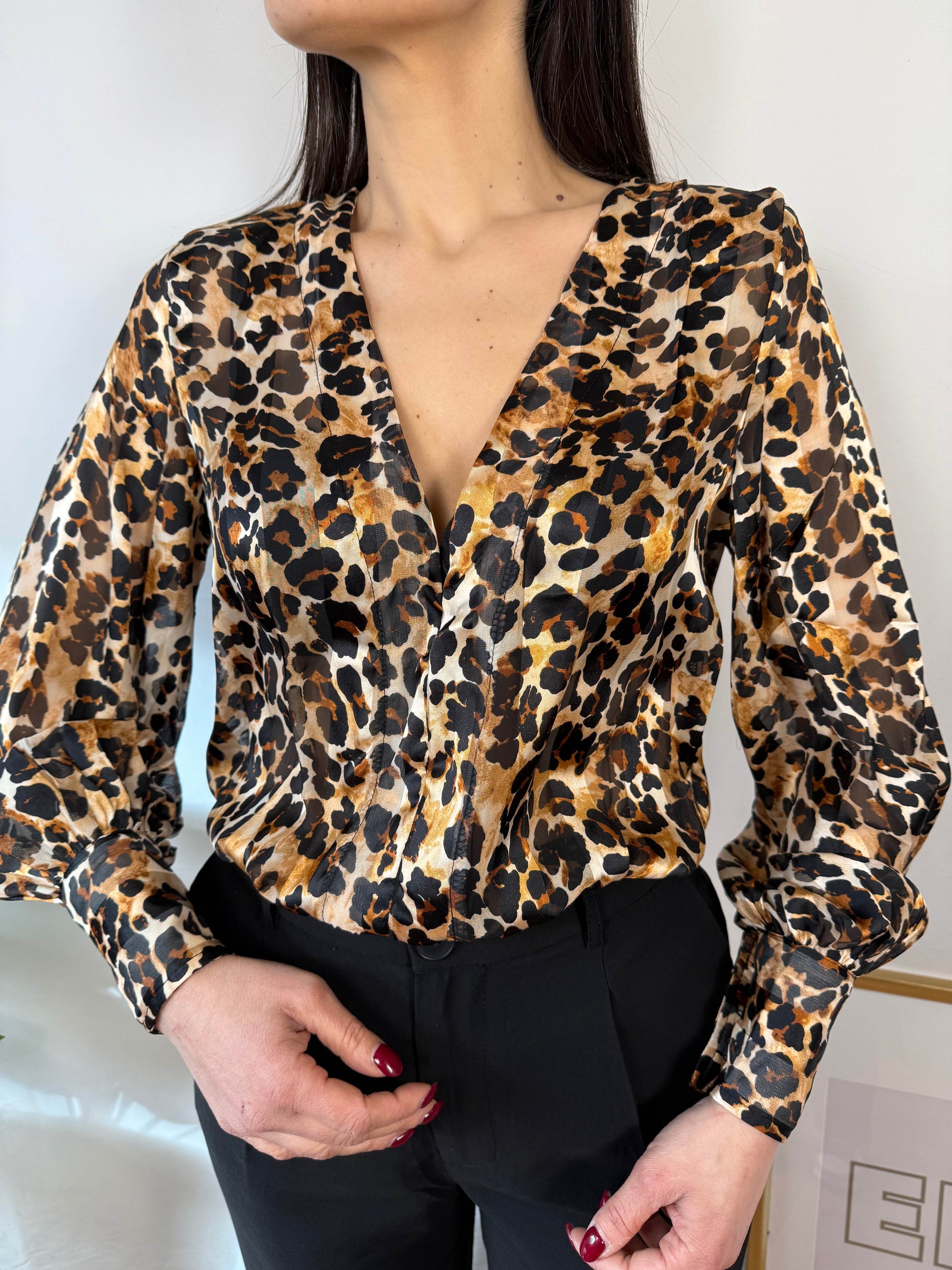 Body con scollo a V, spallina imbottita, bottoncini dorati sul polso.