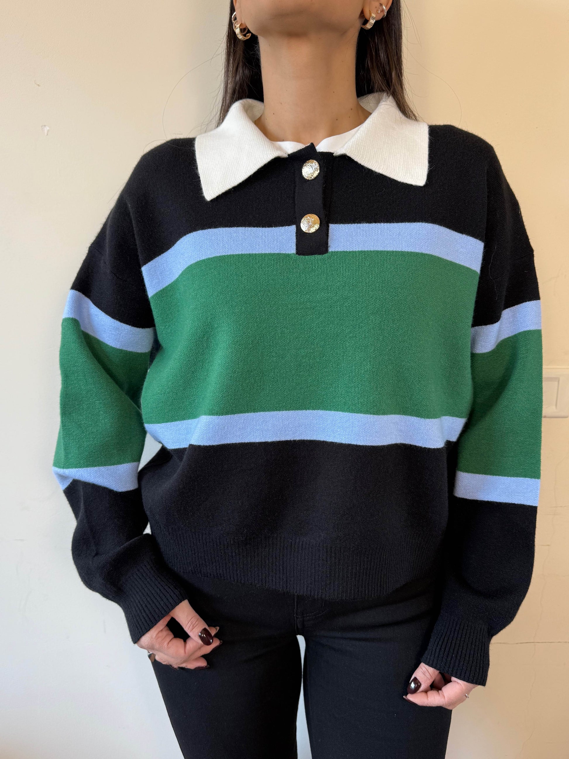 Maglioncino con colletto e bottoni oro, elasticizzato.
