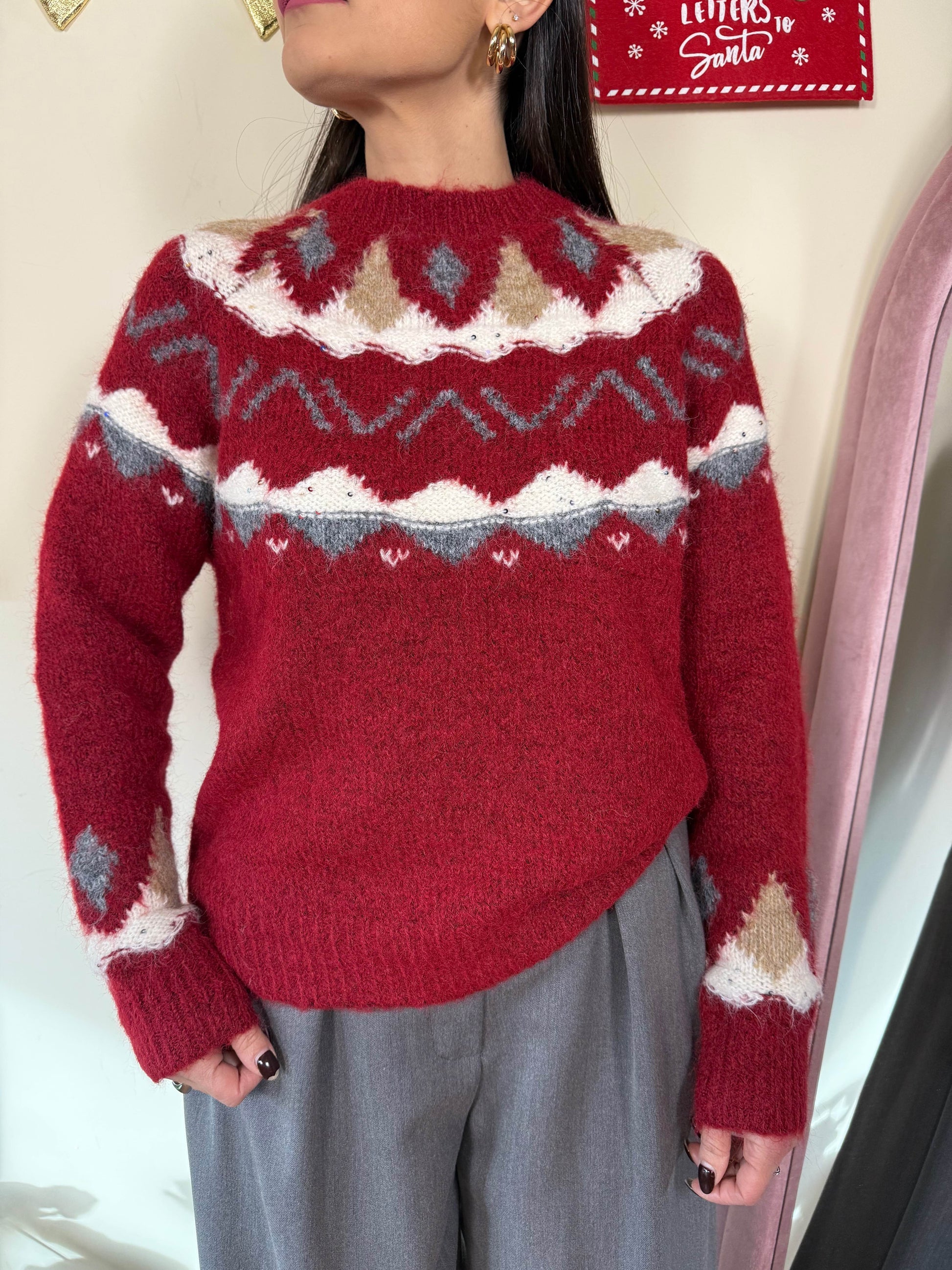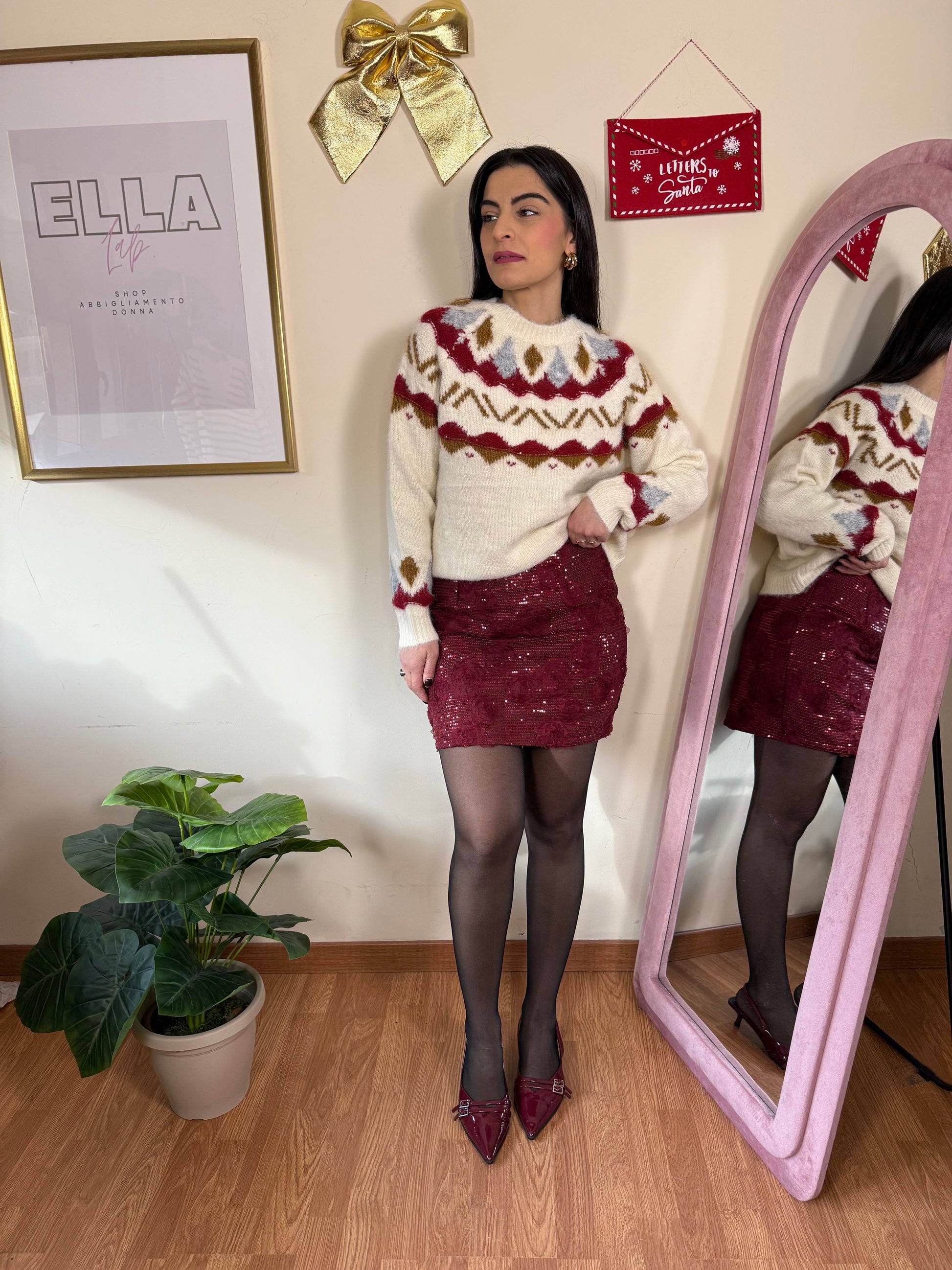 Maglioncino mezzo collo con dettaglio ricami e micro paillettes.