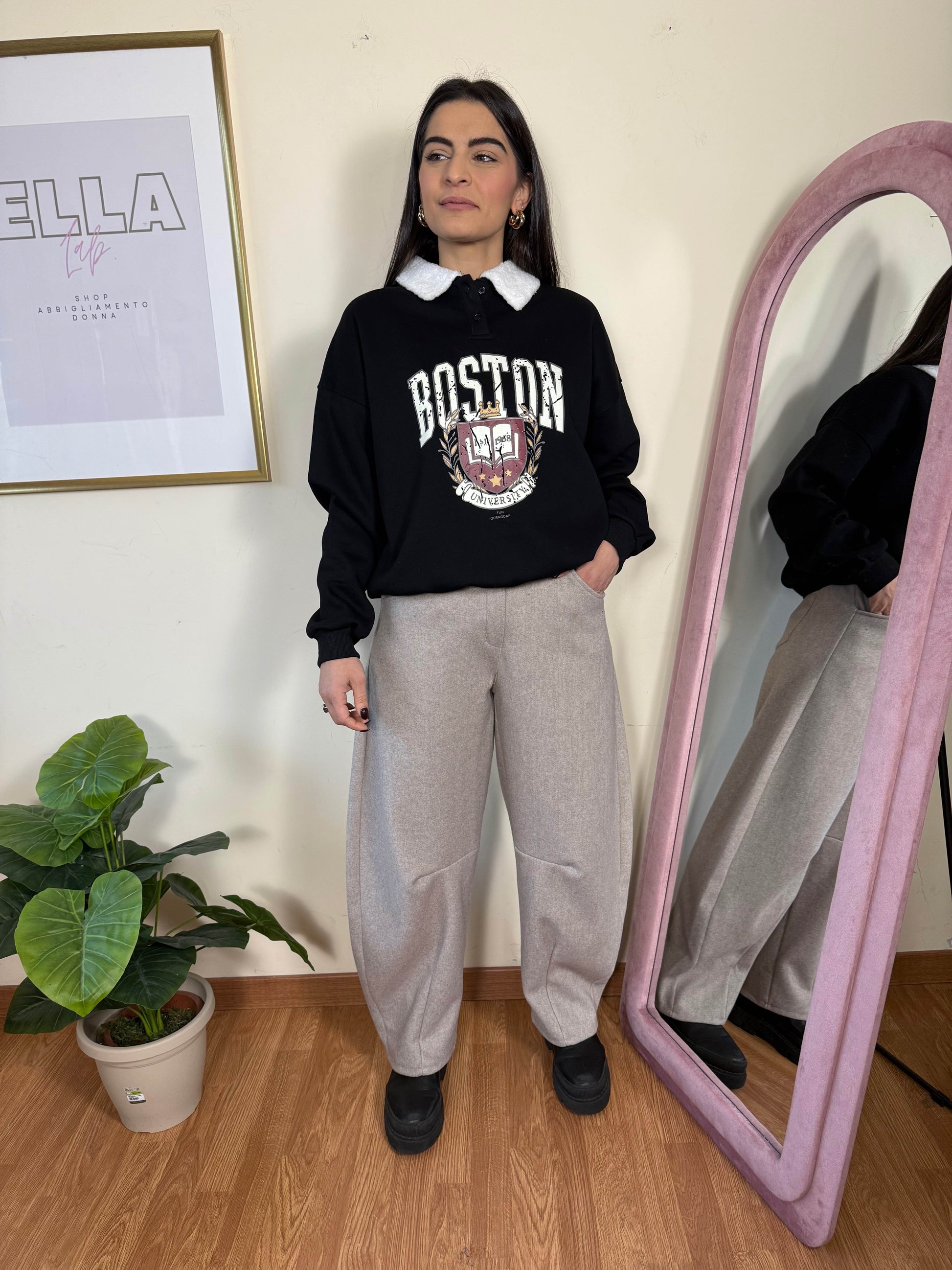 Pantalone in simil lana,modello barrel, tasche laterali e sul retro,cintura inclusa,elasticizzato.