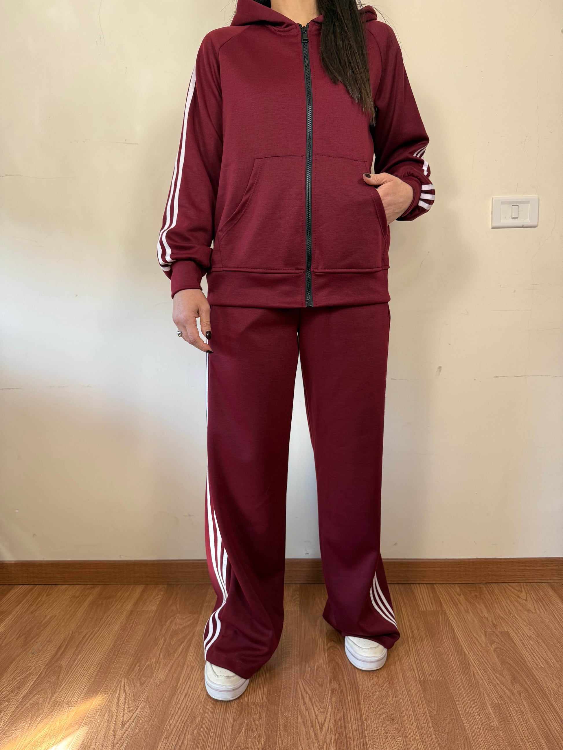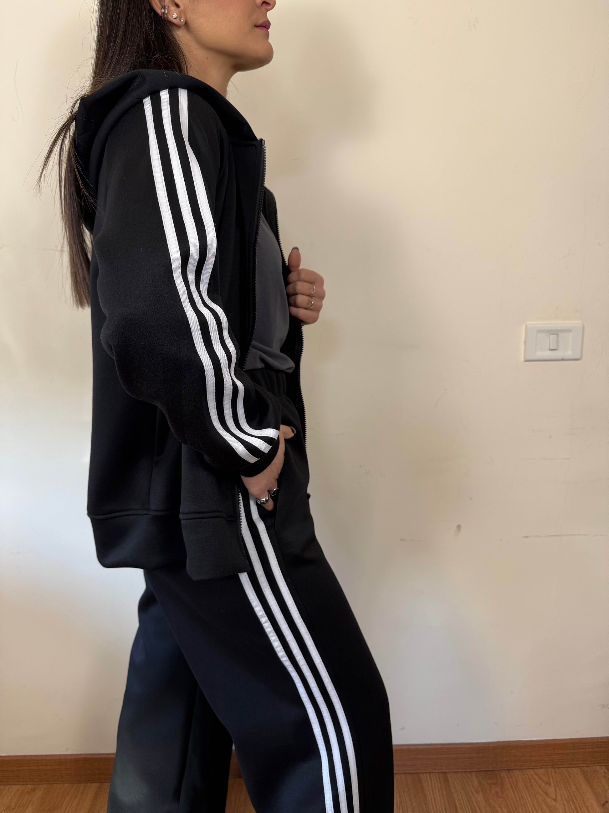 Coordinato felpa e pantalone con bande laterali.